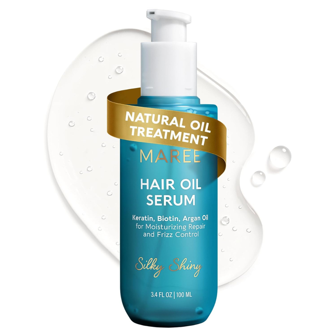 Transform frizzy, dry, or curly hair into smooth, glossy locks with MAREE Hair Oil. Infused with argan oil, keratin, and biotin, this hair serum deeply nourishes and moisturizes strands — taming frizz, reducing dryness, and improving hair texture. Perfect for women with curly, wavy, or frizz-prone hair, it helps restore natural shine and softness, making hair more manageable and healthier‑looking. Lightweight yet powerful, it works as a daily treatment or finishing serum to smooth out frizz and add lasting gloss.